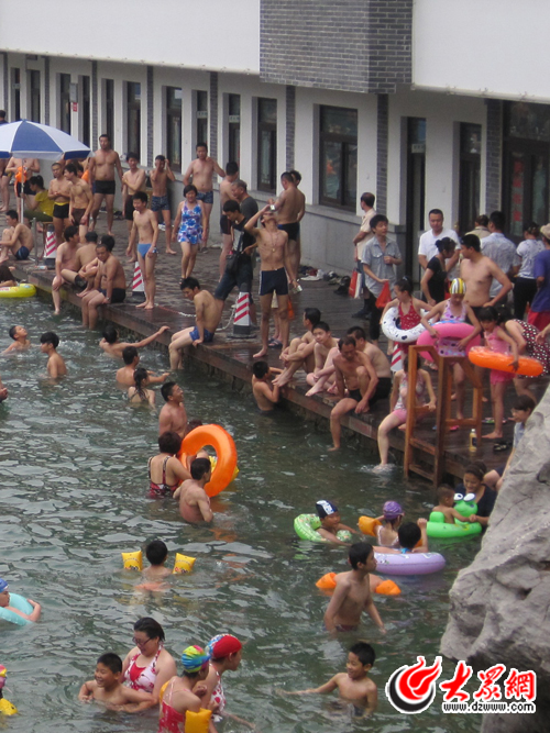 “浴場里人真是太多了,感覺游泳伸不開手腳。”市民劉先生帶著一絲無奈說。作為泉城濟南唯一的免費泉水浴場,隨著天氣愈來愈熱,泉水浴場無疑成為游泳愛好者避暑的好去處,但能夠容納100多人的泳池,卻一次進去兩三百人一起游泳,這讓很多游泳的市民感覺“游不盡興”。 盡管今天是工作日,盡管是上班時間,來到這里游泳的人仍然絡(luò)繹不絕,不僅泳池里擠滿游泳戲水的市民,泳池周邊的臺子上也市民扎堆,由于泳池空間有限,很多人無法下水,只能暫時站在岸邊觀看。記者粗略數(shù)了數(shù),寬20米、長50米、僅能容納100多人的泉水浴場泳池,有近三百人在同時游泳。