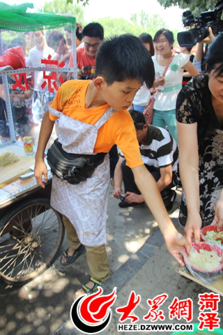 大眾網(wǎng)菏澤6月25日訊(記者 李強)6月23日,一則網(wǎng)貼讓單縣13歲的“涼皮弟”王書陽受到全國網(wǎng)友的關(guān)注。由于母親智障、父親偏癱,王書陽不得不輟學(xué),一邊在醫(yī)院照顧父親,一邊在街頭賣涼皮養(yǎng)家糊口。王書陽的不幸和堅強感動了單縣,很多愛心人士紛紛前來照顧他的“生意”。