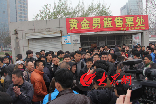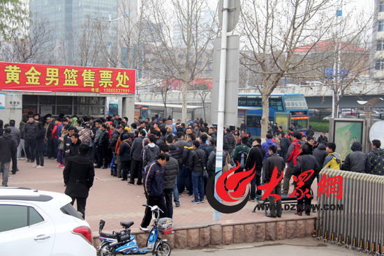 今天上午,黃金男籃售票處已經(jīng)聚集了300多名排隊購票的球迷。