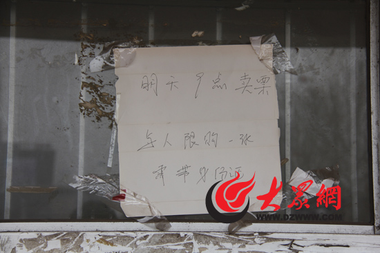 該男子在窗口貼了一份通知,要求購票者要攜帶身份證,且每證限購一張。