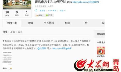 青島市農(nóng)科院官方微博關(guān)于“蘋果丟失”事件的說(shuō)明