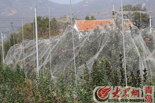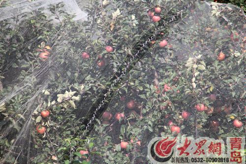 這里的蘋果樹上已覆蓋了一層網(wǎng)膜。大眾網(wǎng)記者 李敏 攝