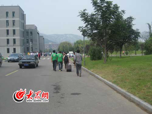 今天上午11:50,大眾網(wǎng)記者驅(qū)車趕到山師長清校區(qū),只見到處是迎新的標(biāo)語和前來報到的學(xué)生。在該校歷山學(xué)院的報到臺前,十幾家媒體記者已經(jīng)在此等候,攝像機(jī)、照相機(jī)等長槍短炮已經(jīng)架好,時刻準(zhǔn)備拍攝保安哥的一舉一動。