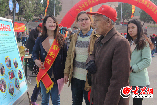 今年3月18日,濟(jì)南慶祝國際社工日系列活動中,社工正在介紹養(yǎng)老服務(wù)項(xiàng)目。記者 馬俊驥 攝