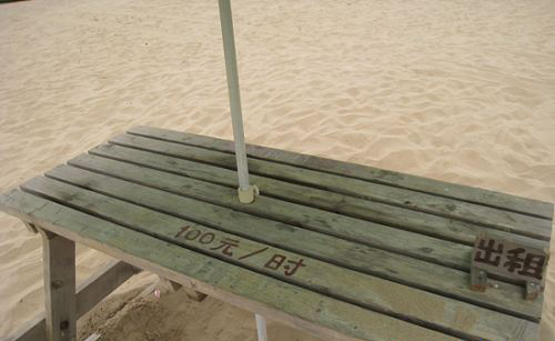 7月1日,記者注意到煙臺(tái)當(dāng)?shù)孛襟w也對(duì)該事件進(jìn)行了跟進(jìn)報(bào)道,當(dāng)?shù)赜浾?月30日來到金沙灘景區(qū),結(jié)果發(fā)現(xiàn)明碼標(biāo)價(jià)的“天價(jià)板凳”依然擺在沙灘上。