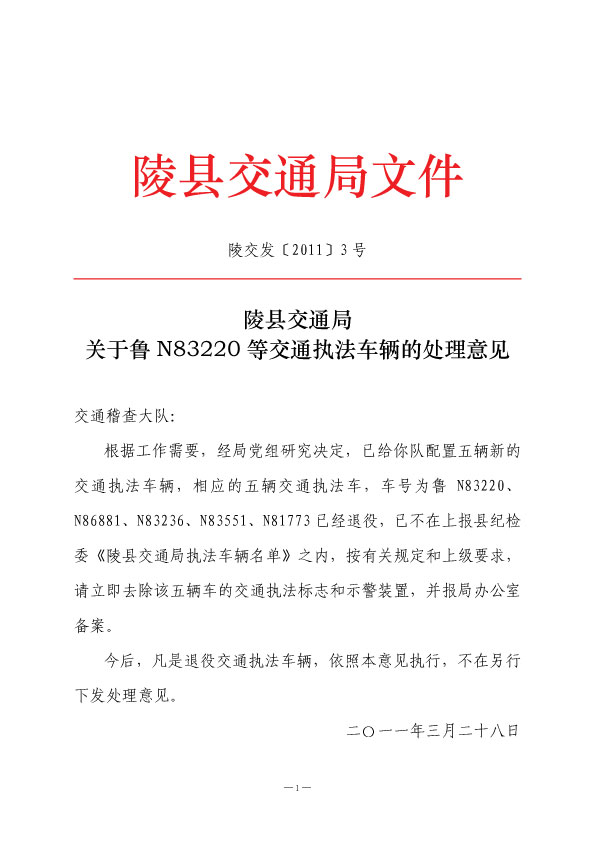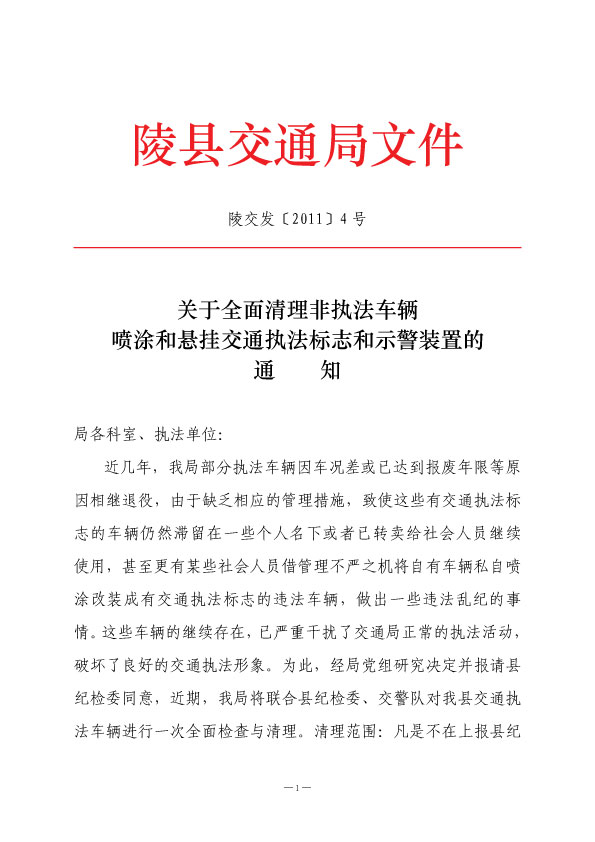 陵縣交通局連發(fā)三紅頭文件整頓執(zhí)法車