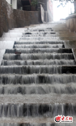 黑虎泉附近石階水流成河