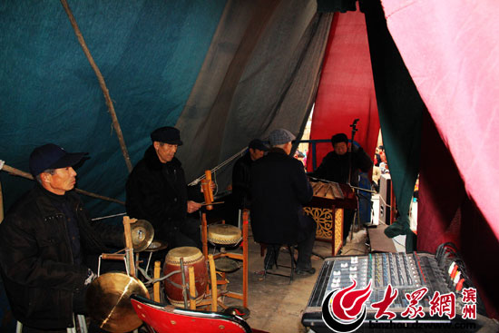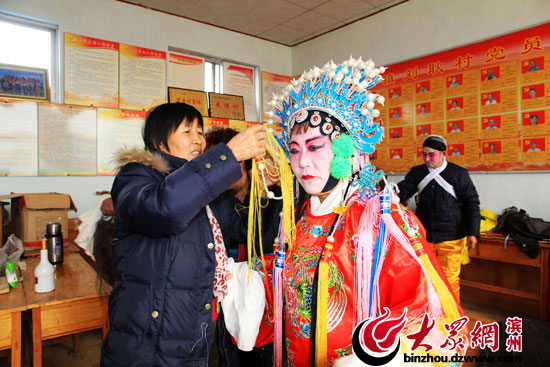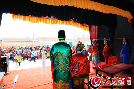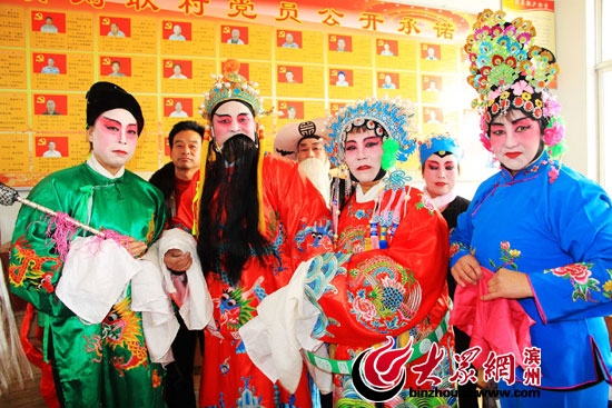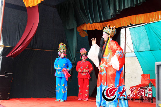 大眾網(wǎng)濱州2月5日訊(記者 賈礦中)2014年2月5日,在山東博興縣店子鎮(zhèn)劉耿村,土生土長(zhǎng)的農(nóng)民演員正在為農(nóng)民群眾表演呂劇《回龍觀》。