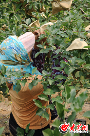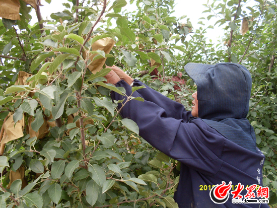 采訪中,記者了解到,蘋果套袋在蛇窩泊鎮(zhèn)果樹種植中有10多年的歷史了,套袋能促進(jìn)果實(shí)全面著色,使果面潔凈,果皮細(xì)嫩。