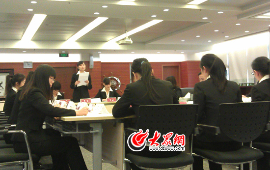 與以往不同的是,當(dāng)天下午,來自新華社、人民網(wǎng)、齊魯晚報(bào)、大眾網(wǎng)等中央和省級(jí)的部分媒體記者受邀隨機(jī)旁聽了第二輪面試(女生組)的整個(gè)過程,而且這次面試的主考官也由原來的濟(jì)南分行相關(guān)負(fù)責(zé)人臨時(shí)改換為總行人力資源部門直接調(diào)派。
