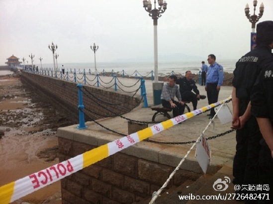 棧橋觀海堤驚現(xiàn)深坑  圖片來自網(wǎng)友@青島代言人
