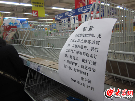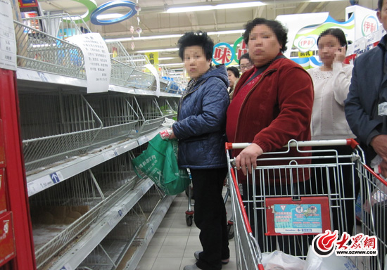時(shí)間:3月17日10:45 地點(diǎn):歷山路家樂福超市 情況:五分鐘搶空400袋鹽