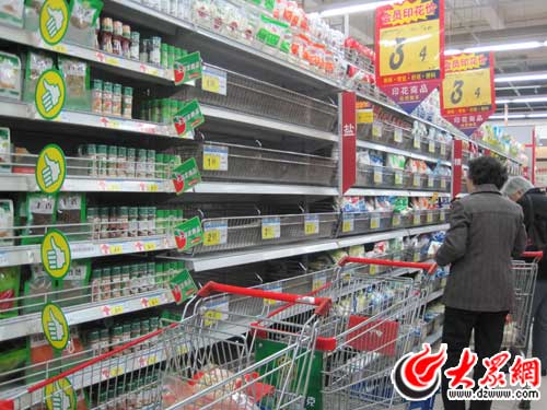時(shí)間:3月17日10:00 地點(diǎn):濟(jì)南大潤發(fā)超市 情況:倉庫貨架全空