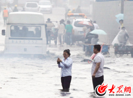 在市中區(qū)人民商場(chǎng),附近商販告訴記者,前幾天下了半個(gè)小時(shí)的暴雨人民商場(chǎng)路口處的積水就漫過(guò)了馬路沿,當(dāng)時(shí)許多汽車行至此處都熄了火,一時(shí)間交通非常擁堵。