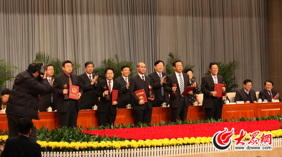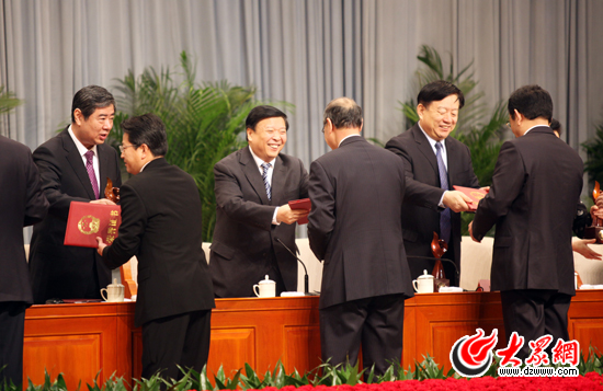 主席臺領(lǐng)導(dǎo)為2011年度山東省省長質(zhì)量獎獲獎單位和個人頒獎
