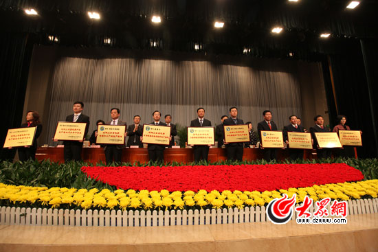 2011年創(chuàng)建山東省優(yōu)質(zhì)產(chǎn)品生產(chǎn)基地及龍頭骨干企業(yè)代表上臺領(lǐng)獎