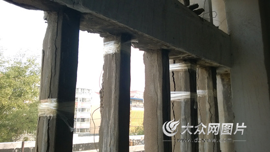 大眾網(wǎng)濟南10月9日訊(記者 馬俊驥)近日,有網(wǎng)友向大眾網(wǎng)反映稱,濟南市歷山東路2號一棟居民樓樓體柱子多處開裂,被用透明膠帶進行捆綁固定。大眾網(wǎng)記者走訪后了解到,這棟居民樓已有33年歷史,開裂的不是承重柱,而是墻外水泥窗欞,捆綁處是先用尼龍繩進行了加固,后覆蓋上了透明膠帶。目前該樓產(chǎn)權(quán)單位及街道辦事處等相關(guān)單位已經(jīng)在磋商維修事宜。