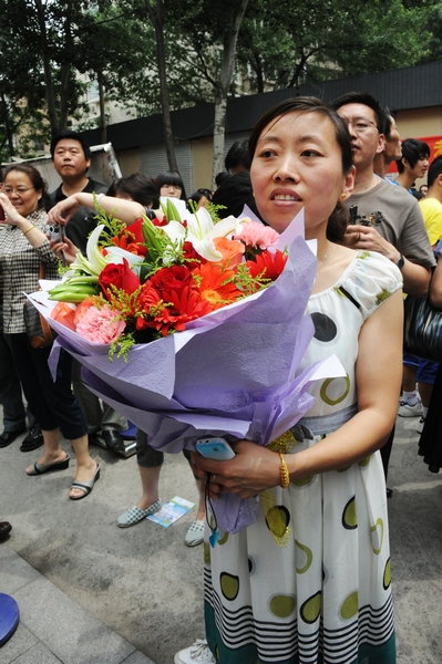 鮮花簇?fù)砀呖悸淠?考生齊呼:解放了!