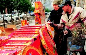 1月14日,農(nóng)歷臘月廿一,濟(jì)南市繞城高速以內(nèi)的區(qū)域,煙花爆竹指定銷售點(diǎn)紛紛開張了。圖為文化西路一商家將各種煙花爆竹擺上街面,供市民們選購(gòu)。買回?zé)熁ū癫荒芰ⅠR燃放,跟往年一樣,只能等到農(nóng)歷小年。