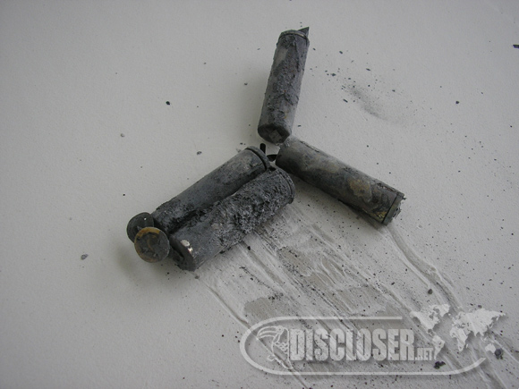 大家能夠從上圖中看出這是什么嗎?也許有人猜是煙頭,有人猜是爆竹?或者是獵槍子彈?這是爆炸后的華碩A3515C-DR筆記本電池!外殼已經(jīng)整體炸掉,只剩下這些內(nèi)部的電池組件了。