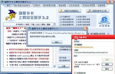 5月19日上午開始,許多卡卡用戶向瑞星公司求助:用卡巴斯基殺毒軟件殺毒后,瑞星卡卡上網(wǎng)安全助手無法正常升級(jí)。