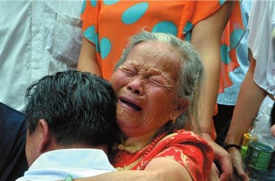 周其鳳母子相擁而泣。