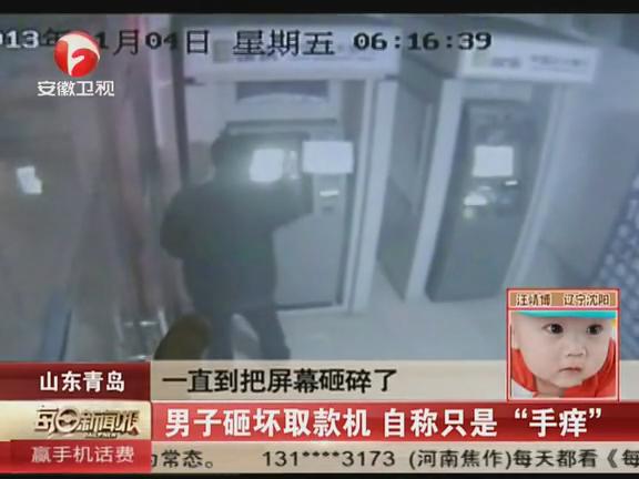 監(jiān)控拍下男子拿磚砸取款機(jī) 稱只是手癢