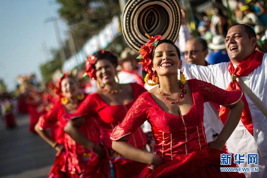 2月9日,在哥倫比亞的巴蘭基亞,人們參加狂歡節(jié)游行。近期,南美多個(gè)國家的狂歡節(jié)陸續(xù)開始。 新華社發(fā)(帕斯 攝)