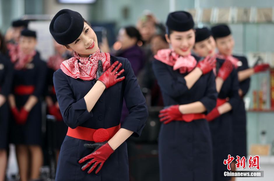 1月16日,春運(yùn)首日的南京祿口國(guó)際機(jī)場(chǎng)二樓出發(fā)廳內(nèi),來自東航江蘇公司客艙服務(wù)部“凌燕乘務(wù)示范組”的51位空乘人員在安檢口上演了一場(chǎng)“快閃”舞表演,帥氣的空少、靚麗的空姐,伴隨著舞曲現(xiàn)場(chǎng)熱舞,為忙碌的春運(yùn)增添了一道別樣的風(fēng)景。中新社發(fā) 泱波 攝