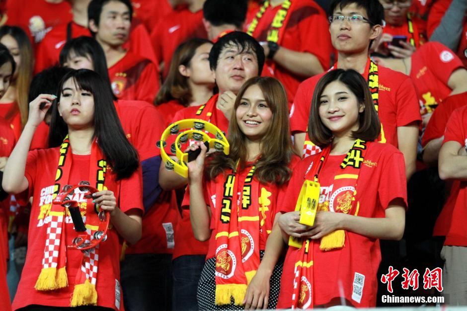 2014亞冠聯(lián)賽小組賽展開第3輪較量,廣州恒大主場對陣韓國球隊全北現(xiàn)代,最終廣州恒大以3比1戰(zhàn)勝對手。一眾美女球迷靚爆賽場,看臺歡呼吶喊為廣州助威。