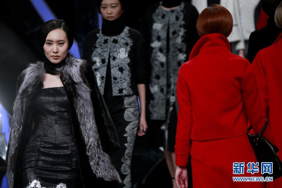 3月24日,模特在開幕大秀上展示玖姿女裝品牌設(shè)計(jì)師劉明設(shè)計(jì)的時(shí)裝。當(dāng)日,中國(guó)國(guó)際時(shí)裝周2014/2015秋冬系列在北京拉開帷幕。在為期8天的時(shí)裝周期間,主辦方將舉辦30場(chǎng)時(shí)裝專場(chǎng)發(fā)布和4場(chǎng)專業(yè)設(shè)計(jì)大賽等系列活動(dòng)。新華社記者李明放攝