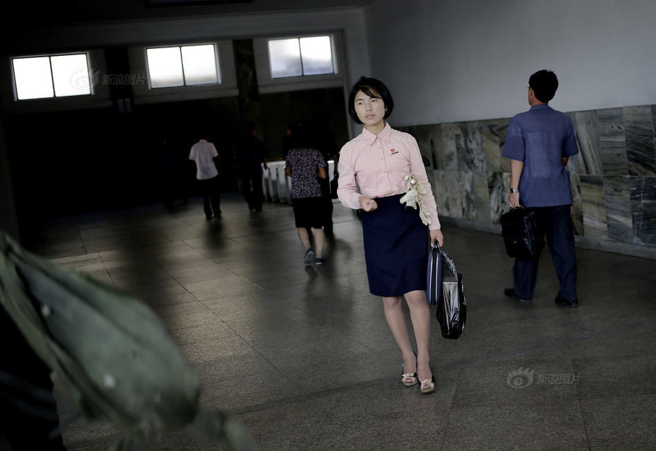 當(dāng)?shù)貢r(shí)間2014年9月1日,朝鮮平壤,一名朝鮮女子離開地鐵站。在朝鮮生活水平相對(duì)較高的平壤,服飾和民眾的穿衣風(fēng)格在近些年不斷地發(fā)生著變化,雖然緩慢且受到一定的限制,但程度遠(yuǎn)超許多外人的想象。