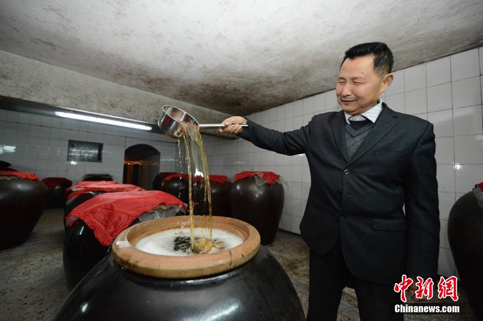 2月9日,被湖南長沙縣江背鎮(zhèn)村民稱為“土豪”的周平,帶領著客人們參觀了自家豪宅下的酒窖。據周平介紹,該酒窖位于自家別墅的5米深處,是自己耗時5年親手打造而成,總面積1200平米,藏有各種百斤大壇酒一千余壇。 楊華峰 攝