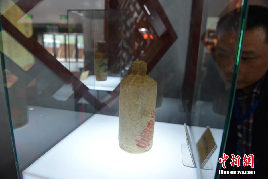 3月23日,中國國際酒業(yè)博覽會在中國酒城——四川瀘州開幕。來自12個國家的420余家酒商共聚于此,探討酒業(yè)的發(fā)展,此次展覽規(guī)模創(chuàng)下了中國國際酒業(yè)博覽會之最。圖為展出的陳年茅臺酒,其市場估價(jià)近40萬元人民幣。中新社發(fā) 張浪 攝