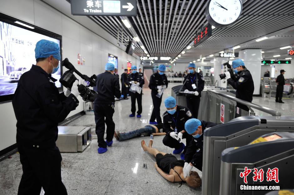 4月23日,長沙警方在長沙地鐵2號(hào)線舉行反恐應(yīng)急演練。圖為演練現(xiàn)場。劉柱 攝