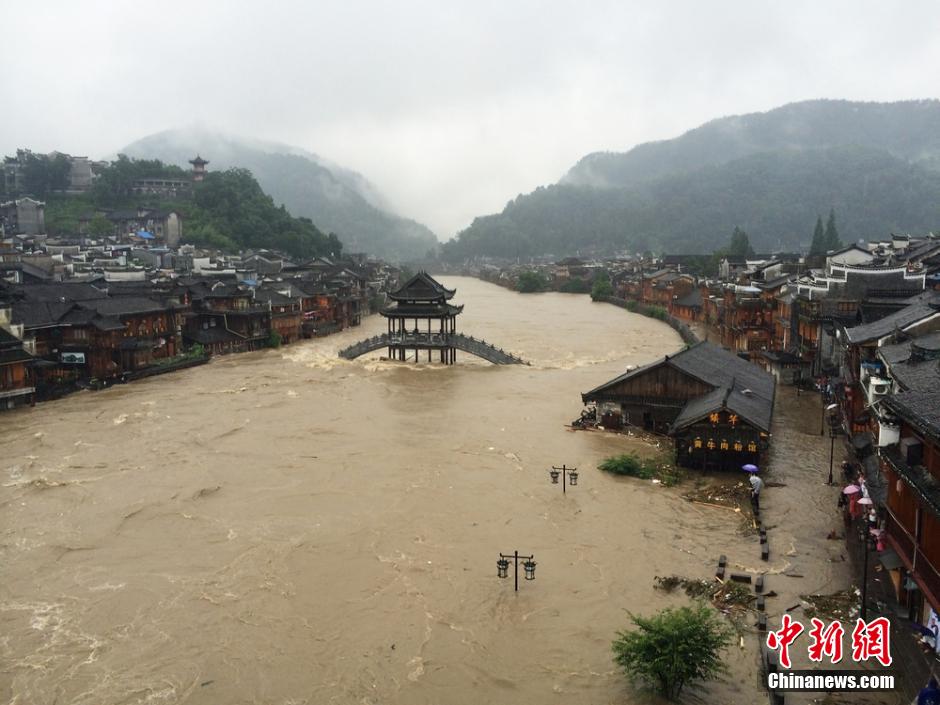 7月15日,受暴雨影響,湖南鳳凰古城出現(xiàn)嚴(yán)重內(nèi)澇,導(dǎo)致沿江商戶和客棧低層被淹,古城內(nèi)全城停電。目前,鳳凰各級部門正在全力營救受災(zāi)群眾。15日,湖南各級氣象部門進(jìn)入暴雨Ⅲ級應(yīng)急響應(yīng)狀態(tài),暴雨預(yù)警由藍(lán)色升級為橙色,預(yù)計(jì)今明為省內(nèi)降水最強(qiáng)時(shí)段大暴雨襲擊湘中以北。