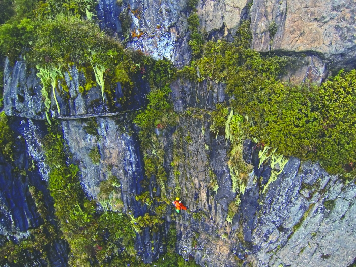 10月5日,峨眉山景區(qū)清潔工彭文才下到巖壁清理游客丟棄的垃圾。作為護(hù)欄以外和懸崖區(qū)域唯一的清潔工,44歲的彭文才每天從早上8點半工作到下午5點半,“一般一周下崖兩三次,如果云霧太大視野不清或是下雪結(jié)冰,出于安全考慮就不下去了。最開始只用安全繩,身后要有十多個人拉著,2008年開始有了專業(yè)的攀巖登山繩,我一個人就可以上上下下了!迸砦牟耪f,今年國慶崖下的垃圾比去年要少,希望以后不需要再下崖了。