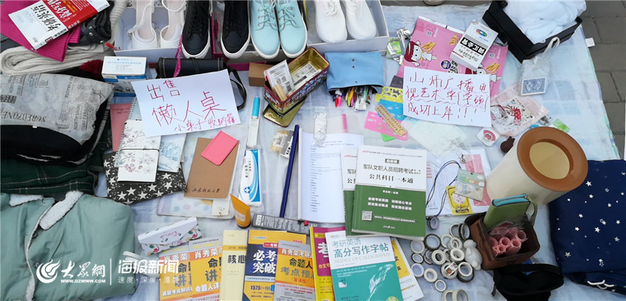 大眾網·海報新聞濟南5月24日訊(見習記者 孫靚)隨著新一年畢業(yè)季的到來,近日,濟南不少高校的“跳蚤市場”陸續(xù)火爆開市。大眾網·海報新聞記者發(fā)現(xiàn),這些“跳蚤市場”售賣的物品五花八門,大到考研筆記、小到粘鼠板,統(tǒng)統(tǒng)都有。不少畢業(yè)生還把這些出售物品掛到網上,線上線下一起開賣。