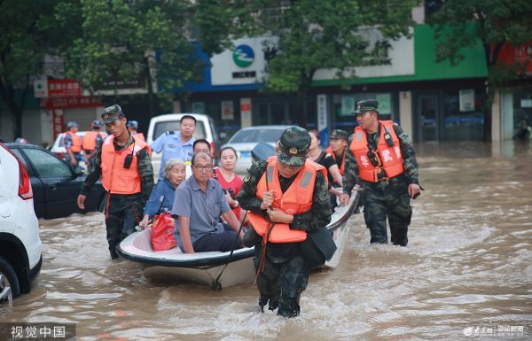 濟(jì)南:受“利奇馬”影響多個(gè)村莊被淹 救援隊(duì)開(kāi)鏟車街頭運(yùn)人