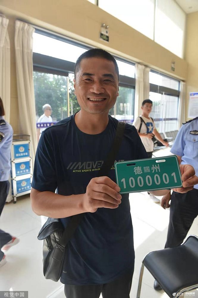 2019年8月19日,山東德州,市民領(lǐng)到了全省第一張電動車號牌“德州1000001”。