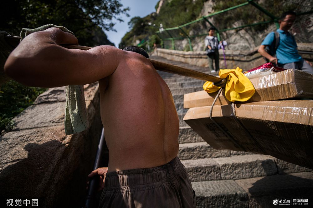 此時在中天門儲貨場的王懷玉已經(jīng)起床,擔心打擾到工友的他沒有打開宿舍的燈,而是摸著黑一個人走進廚房準備早飯。起火、燒水,一袋方便面就著前一晚剩下的饅頭、咸菜,他匆匆就把早飯對付過去了。今天他要趕在8時之前把貨送到泰山頂上的一個轉(zhuǎn)播臺。