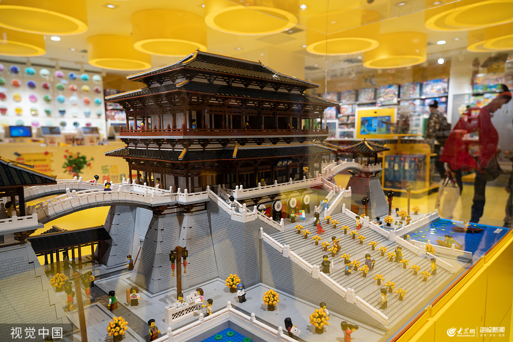 2019年10月9日,樂高西安第二家授權(quán)店開業(yè),店內(nèi)一座由14萬顆積木拼成的大唐芙蓉園紫云閣造型,吸引眾多“樂高迷”前來觀看。