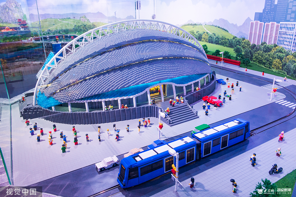2019年1月9日,遼寧省沈陽市,150萬塊樂高積木拼砌“迷你沈陽”吸引觀眾注目, 城市地標(biāo)造型逼真。