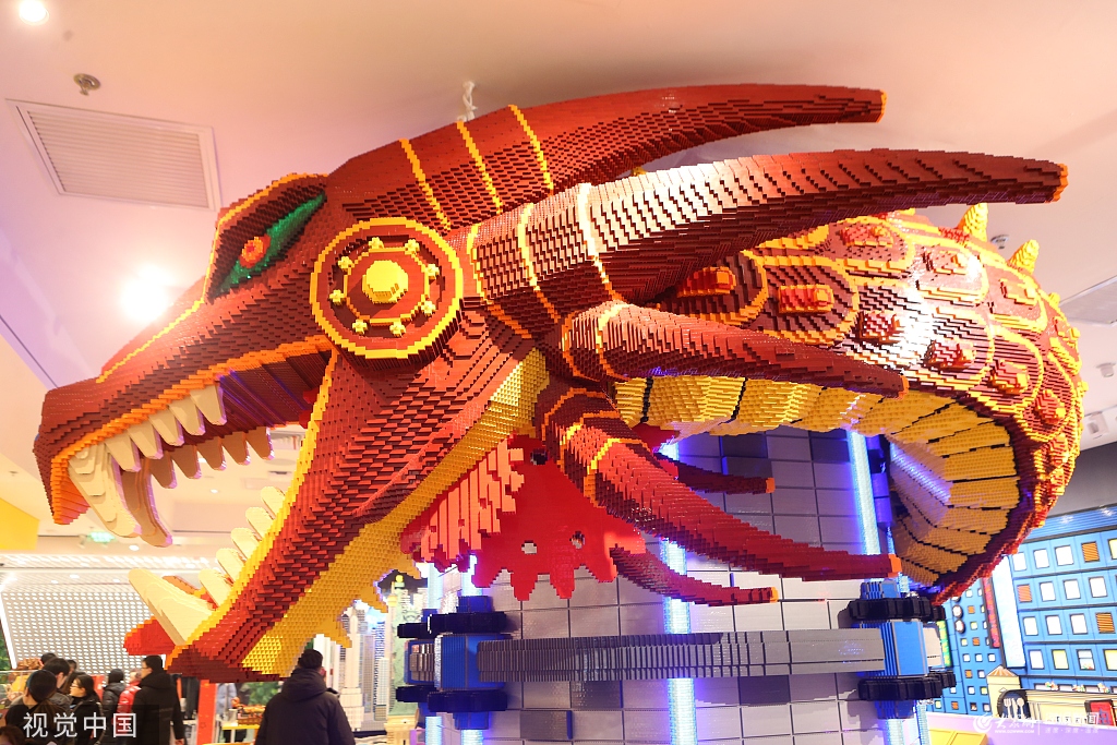 2019年1月5日,上海,樂高上海旗艦店180萬顆粒打造“巨龍”,通體紅色栩栩如生。